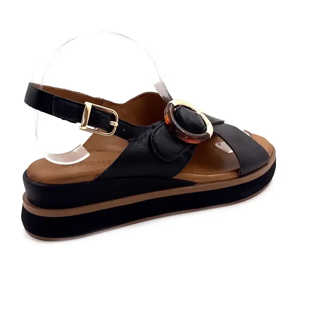 Inuovo 113138 Μαύρα Δερμάτινα Σανδάλια Πλατφόρμα