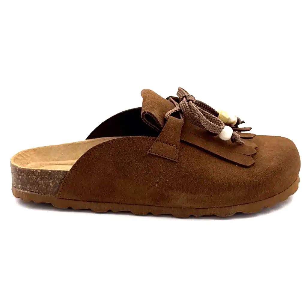 Αναφορά: Ivoire 15-71-15999-001 — Τύπος: Clog Mules — Υλικό: Δέρμα σουέτ — Χρώμα: Καφέ — Λεπτομέρειες: Κρόσσια, πλεγμένο δέσιμο, φυσικές χάντρες — Εφαρμογή: Κανονική — Στυλ: Μποέμ Χειροποίητο