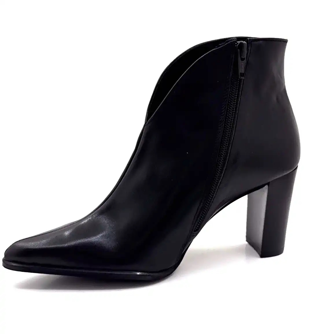Myma 8509 Black Leather Heeled Ankle Boots