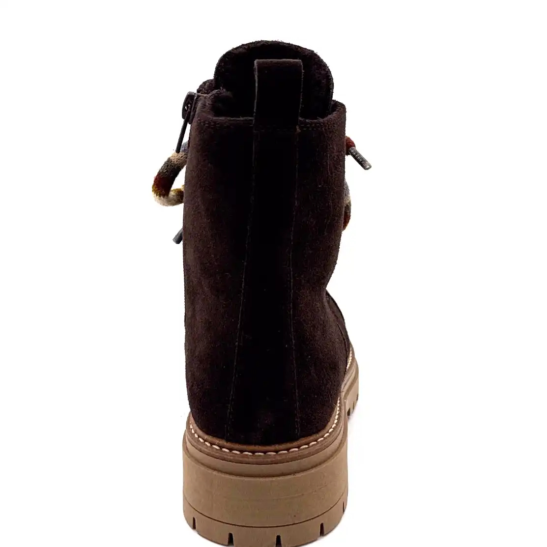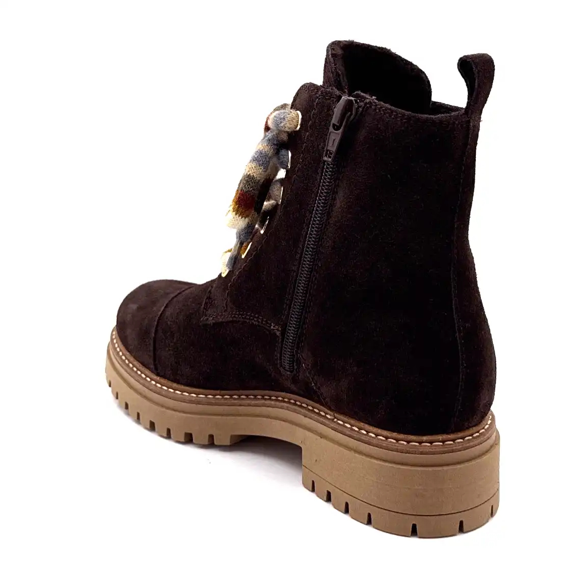 Discover the Elena 11641 model, lined lace-up ankle boots that combine warmth, comfort, and elegance. Ideal for facing cold days in style, these chocolate- colored leather women's ankle boots offer optimal support and a timeless look, perfect for everyday wear.