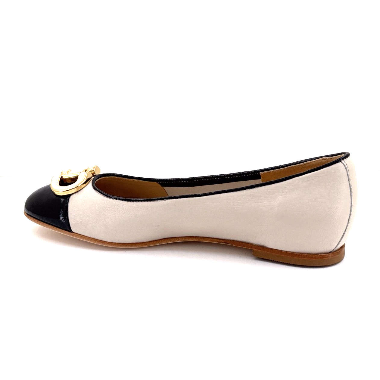 Ivoire Ballerinas Ch945 Ecru Black Leather