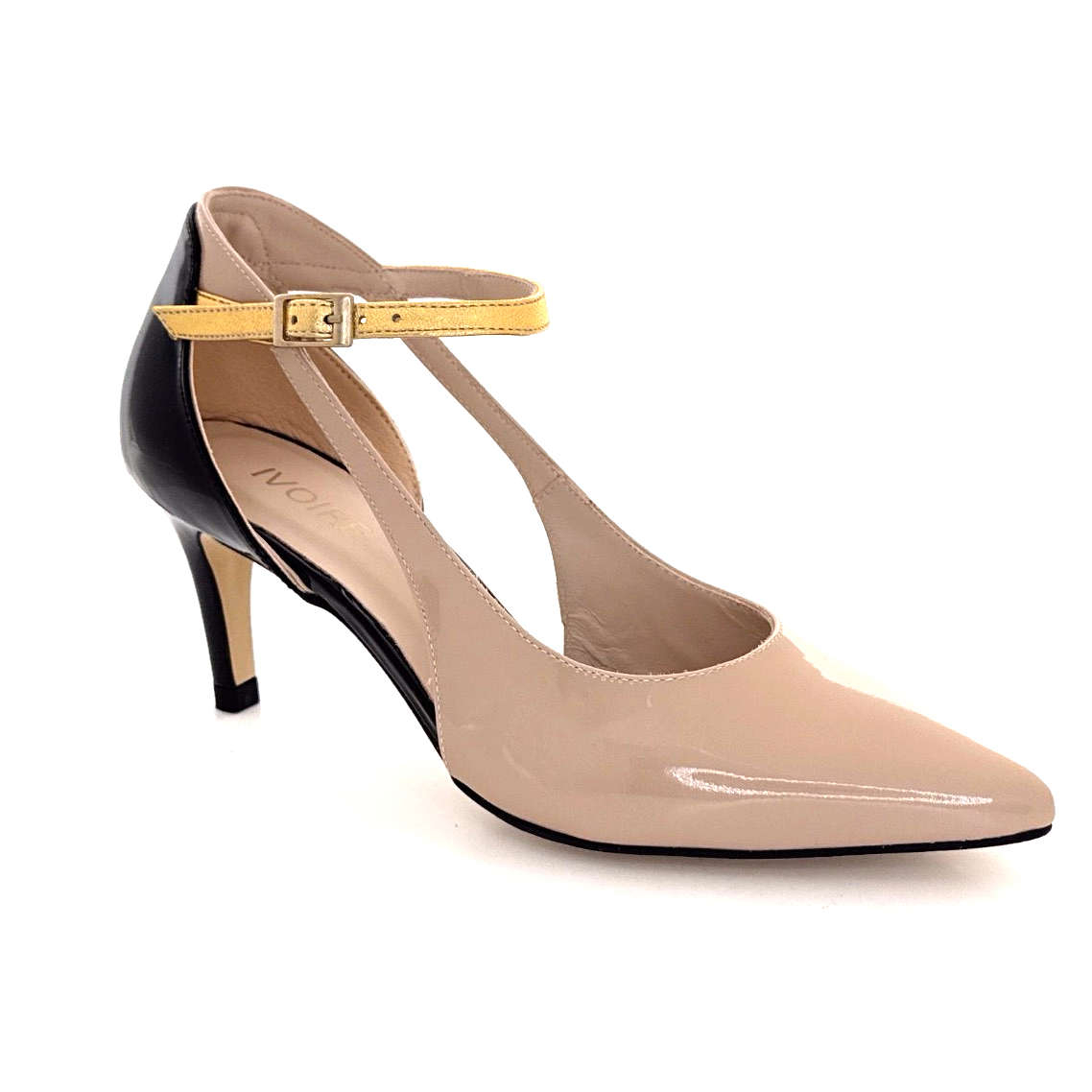 Ivoire 2923 Patent Leather Nude Black & Gold Front Strap Pumps