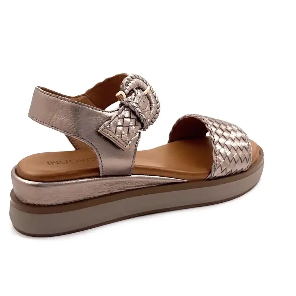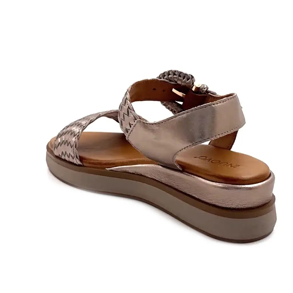 Referencia: Inuovo 113031 — Tipo: Sandalias de plataforma — Material: Piel — Color: Bronce dorado — Cierre: Hebilla trenzada ajustable — Ajuste: Regular — Estilo: Lujo artesanal