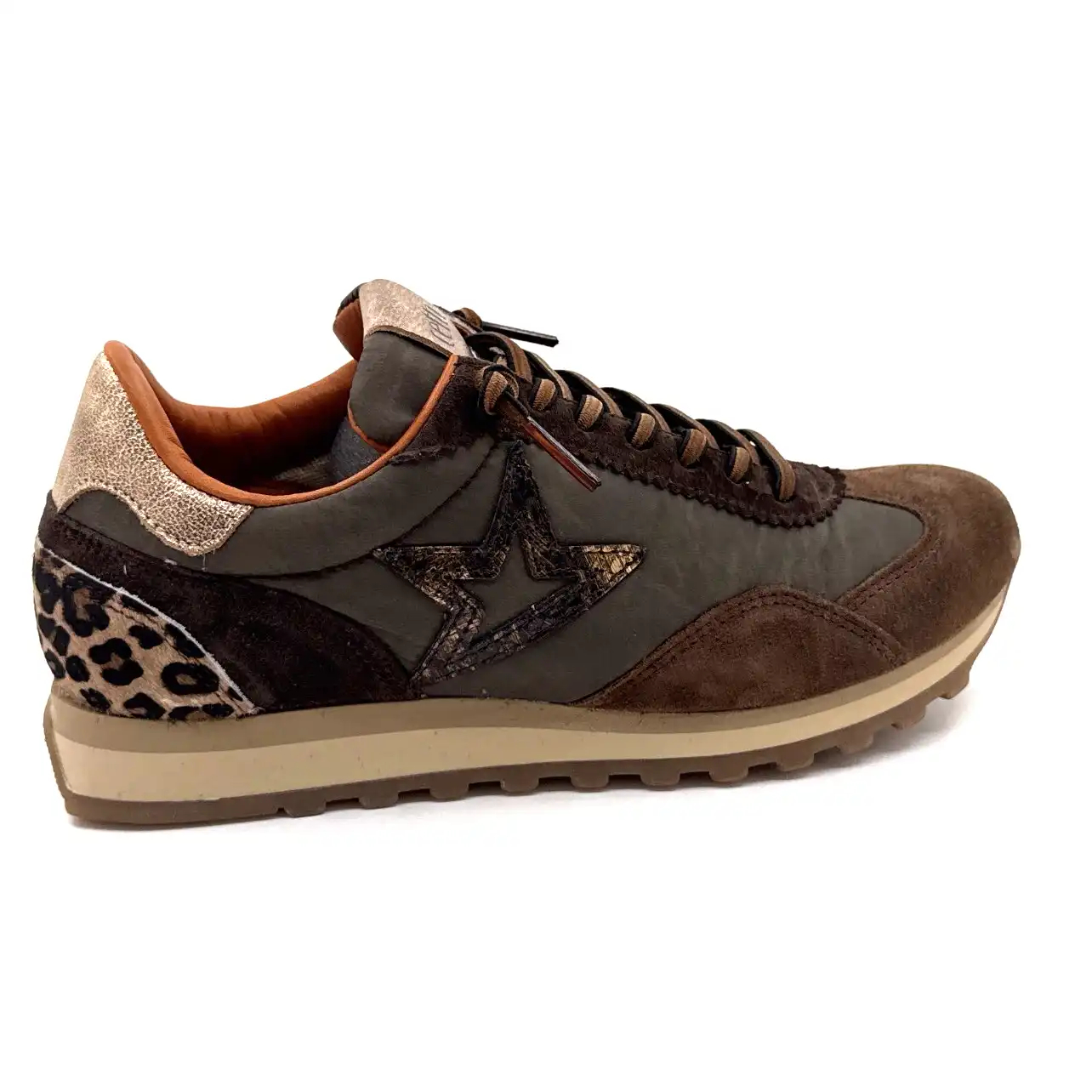 Baskets Running Cetti 1259 Textile Cacao & Daim Café Léo & Or