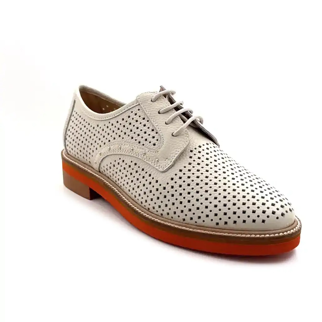 Référence : Ivoire 2033-188 — Type : Derbies — Matière : Cuir perforé — Couleur : Crème — Semelle : Orange — Fermeture : Lacets — Chaussant : Normal — Style : Classique contemporain