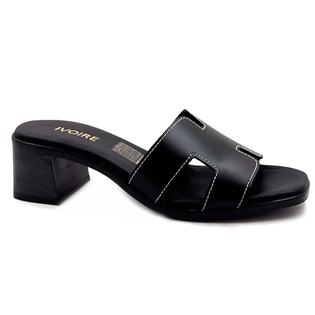 Marque : Ivoire — Référence : 5900 — Type : Mules à talons — Matière : Cuir — Couleur : Noir — Genre : Femme — Style : Chic minimaliste intemporel