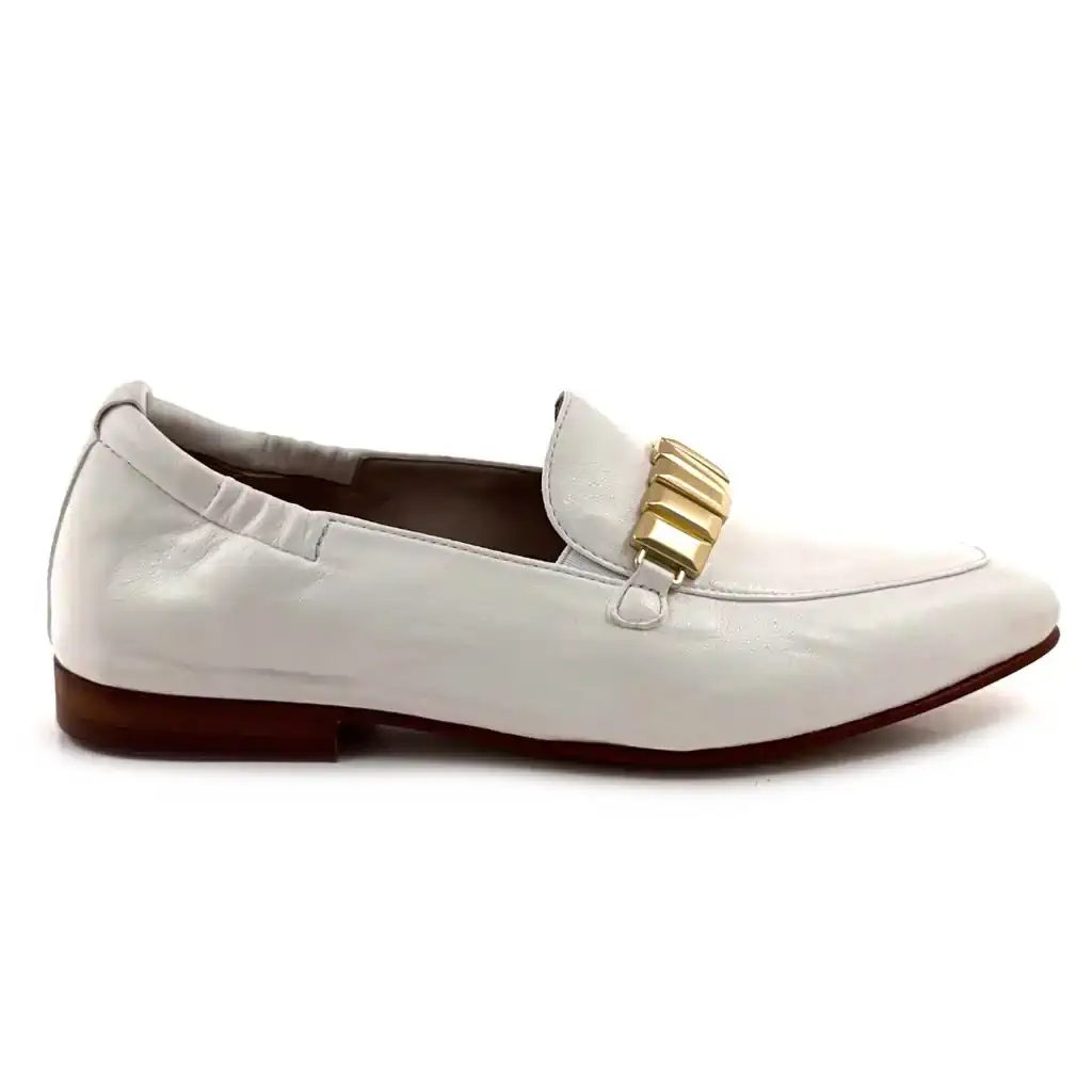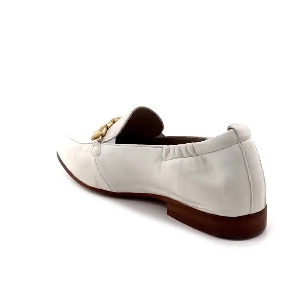 Marque : Softwaves — Référence : 9.37.01 — Type : Mocassins pointus — Matière : Cuir — Couleur : Blanc — Accessoire : Doré — Genre : Femme — Saison : Printemps-Été