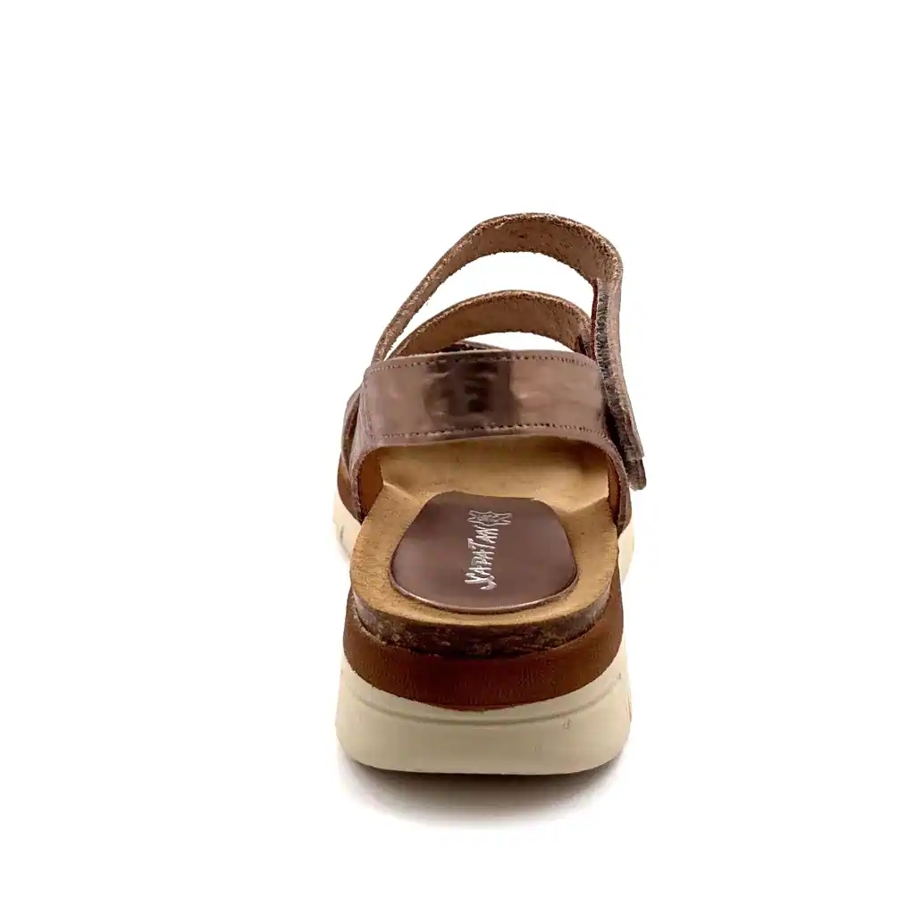 Découvrez les sandales Xapatan 1069 en cuir bronze, un modèle qui allie maintien personnalisé et caractère affirmé : leurs trois scratchs ajustables — un à l'avant du pied et deux à la cheville — garantissent un ajustement précis et sécurisé adapté à toutes les morphologies, tandis que les deux brides à motif façon reptile apportent ce relief changeant et précieux qui distingue immédiatement ce modèle d'une sandale ordinaire. Une sandale entièrement en cuir véritable, pensée pour les femmes qui aiment conjuguer confort fonctionnel et style affirmé.