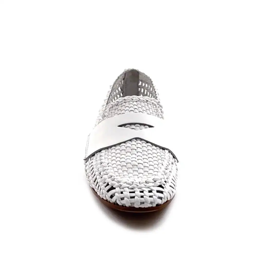 Reference: Ivoire 57.135.471 — Type: Loafers — Material: Braided leather — Color: White — Detail: Smooth leather panel — Fit: Regular — Style: Elegant handcrafted
