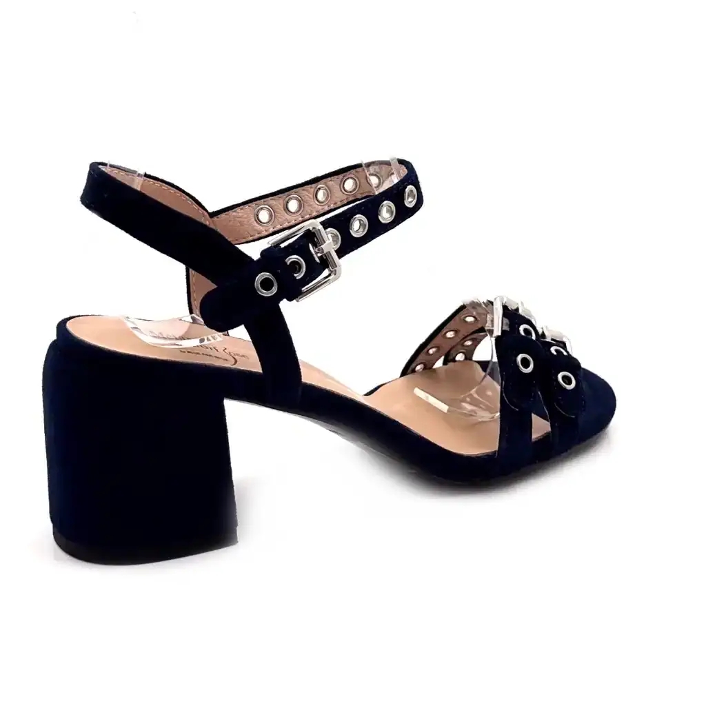 Cikkszám: Métamorfose Zallo — Típus: Magas sarkú szandál — Anyag: Velúr bőr — Szín: Sötétkék — Záródás: Állítható csattal — Fazon: Normál — Stílus: Elegáns nőies