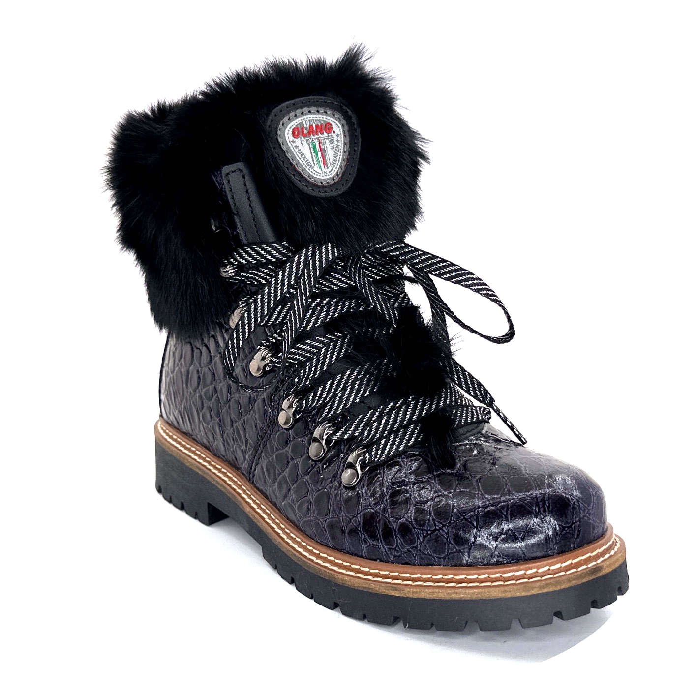 Olang Imperial Luxury pelsforede ankelstøvletter Svart lakkskinn