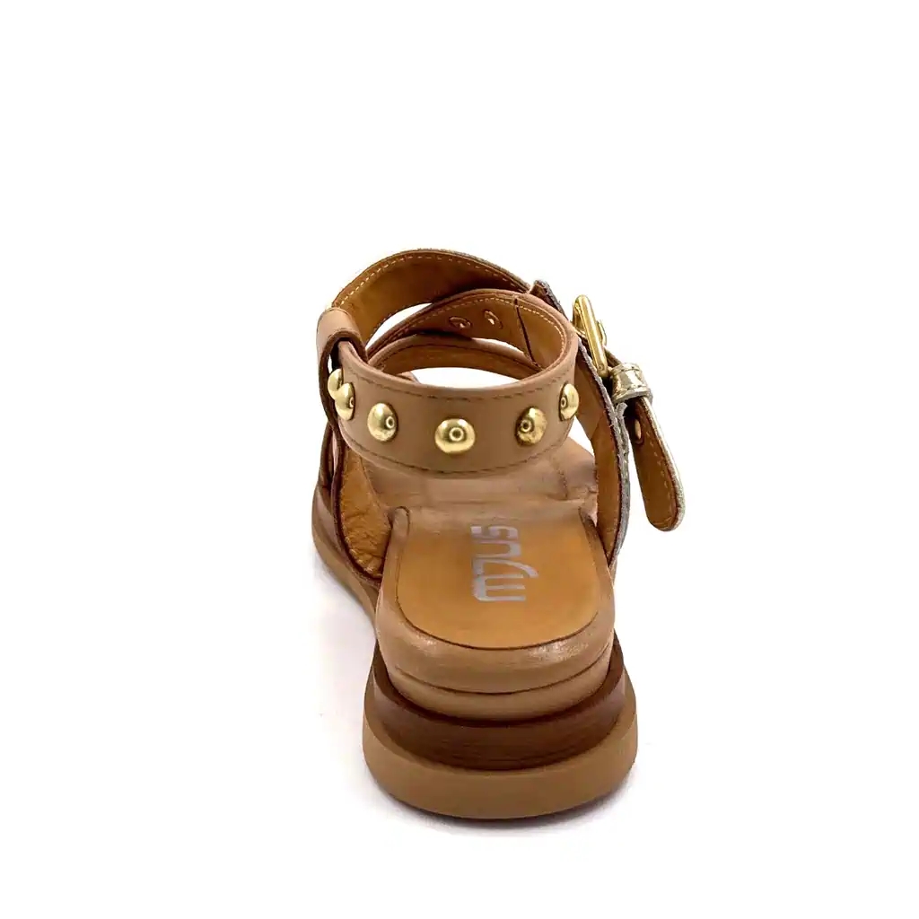 Marcă: Mjus — Referință: 114004 101 0002 — Tip: Sandale cu platformă — Material: Piele — Culoare: Camel și auriu — Sex: Pentru femei — Sezon: Primăvară/Vară